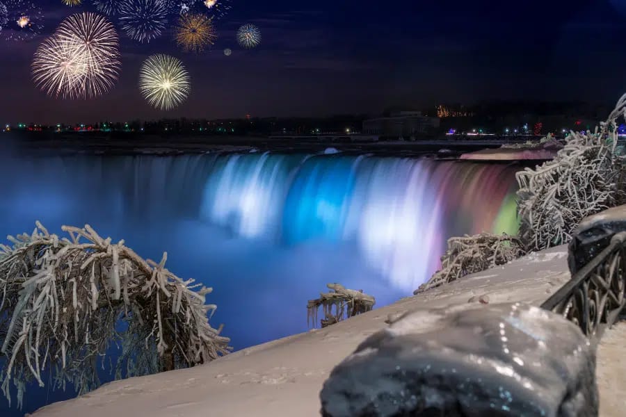 At night, it becomes a tranquil escape. The gardens and pathways are gently lit, creating a calming atmosphere perfect for a romantic evening stroll. Find a cozy spot in the park to watch the fireworks light up the night sky above the illuminated falls, adding a magical touch to your visit.